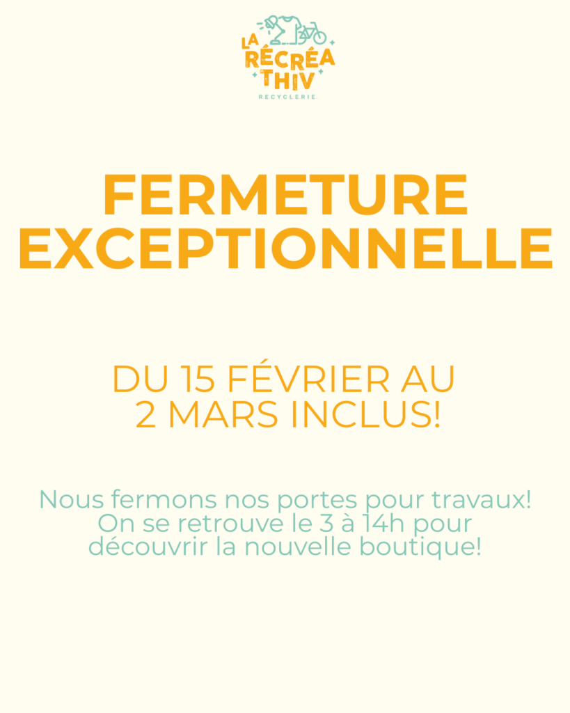 Fermeture exceptionnelle / Événement, Vie associative On se retrouve le 3 à 14h pour découvrir le nouvel aménagement!