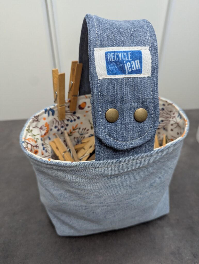 Venez réaliser une panière à pinces à linge ou autre en jean de récup!